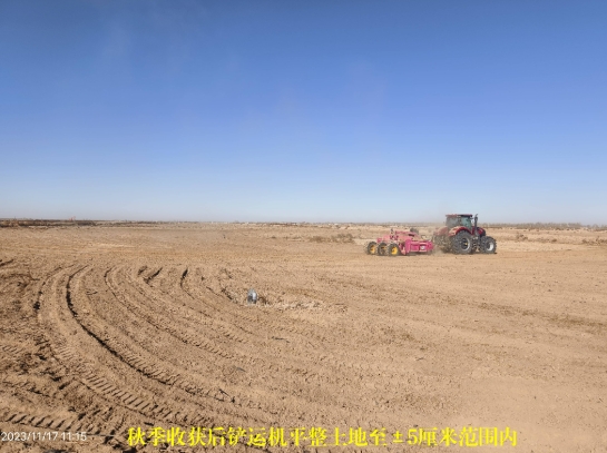 2、磴口縣巴彥套海農(nóng)場(chǎng)機(jī)械隊(duì)地塊屬于2022年高標(biāo)準(zhǔn)農(nóng)田項(xiàng)目區(qū),渠、溝、路、林、田配套到位。基本為寬100米、長(zhǎng)700米的“條形”土地,激光平整土地誤差在3厘米內(nèi)。2023年全部種植中苜4號(hào)和美國(guó)騎士苜蓿,年內(nèi)平茬收獲2次,現(xiàn)已澆灌冬季保墑水,是認(rèn)證和發(fā)展有機(jī)苜蓿基地的理想之地。