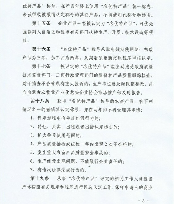關(guān)于印發(fā)《內(nèi)蒙古農(nóng)牧業(yè)產(chǎn)業(yè)化龍頭企業(yè)名優(yōu)特產(chǎn)品認(rèn)定辦法》的通知