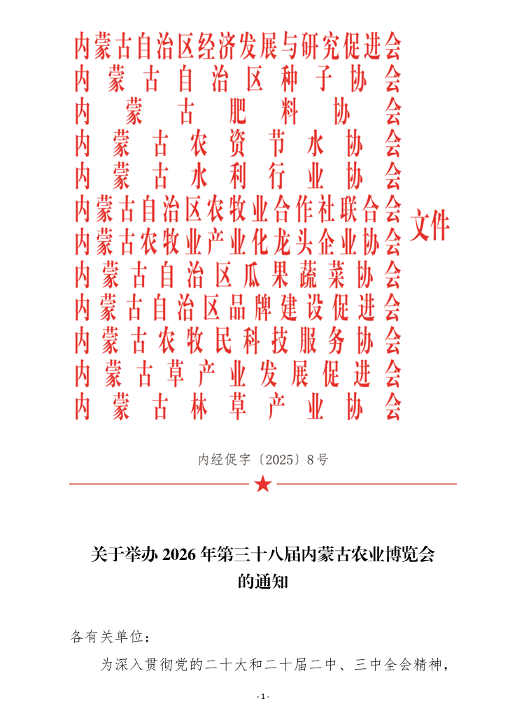 關于舉辦2026年第三十八屆內蒙古農業(yè)博覽會的通知