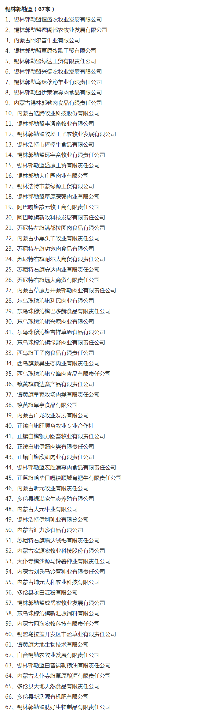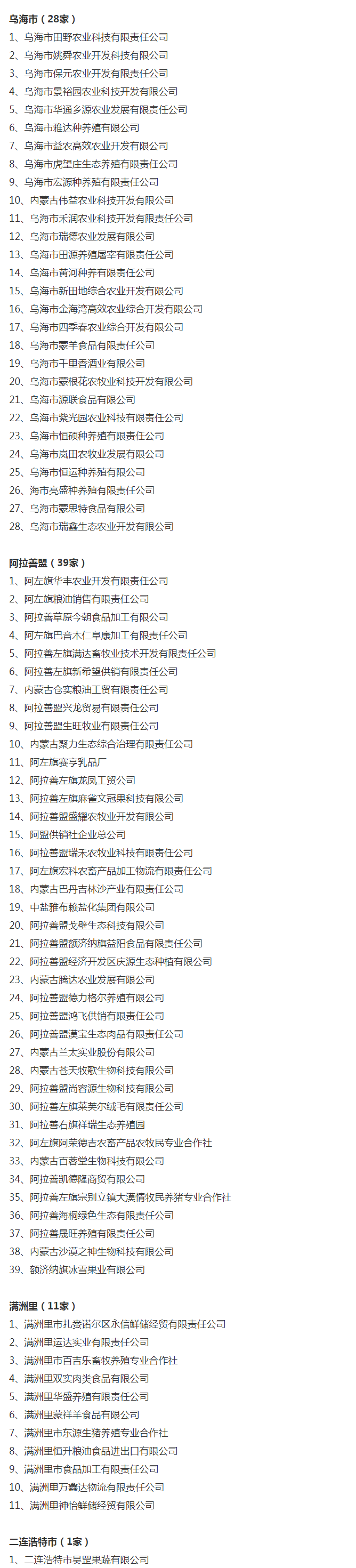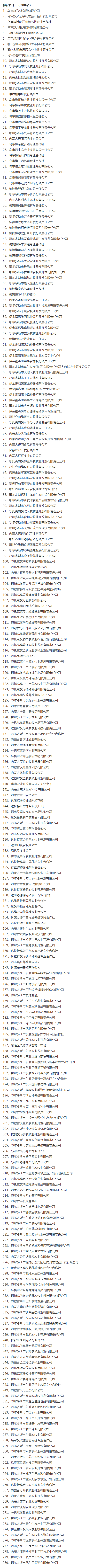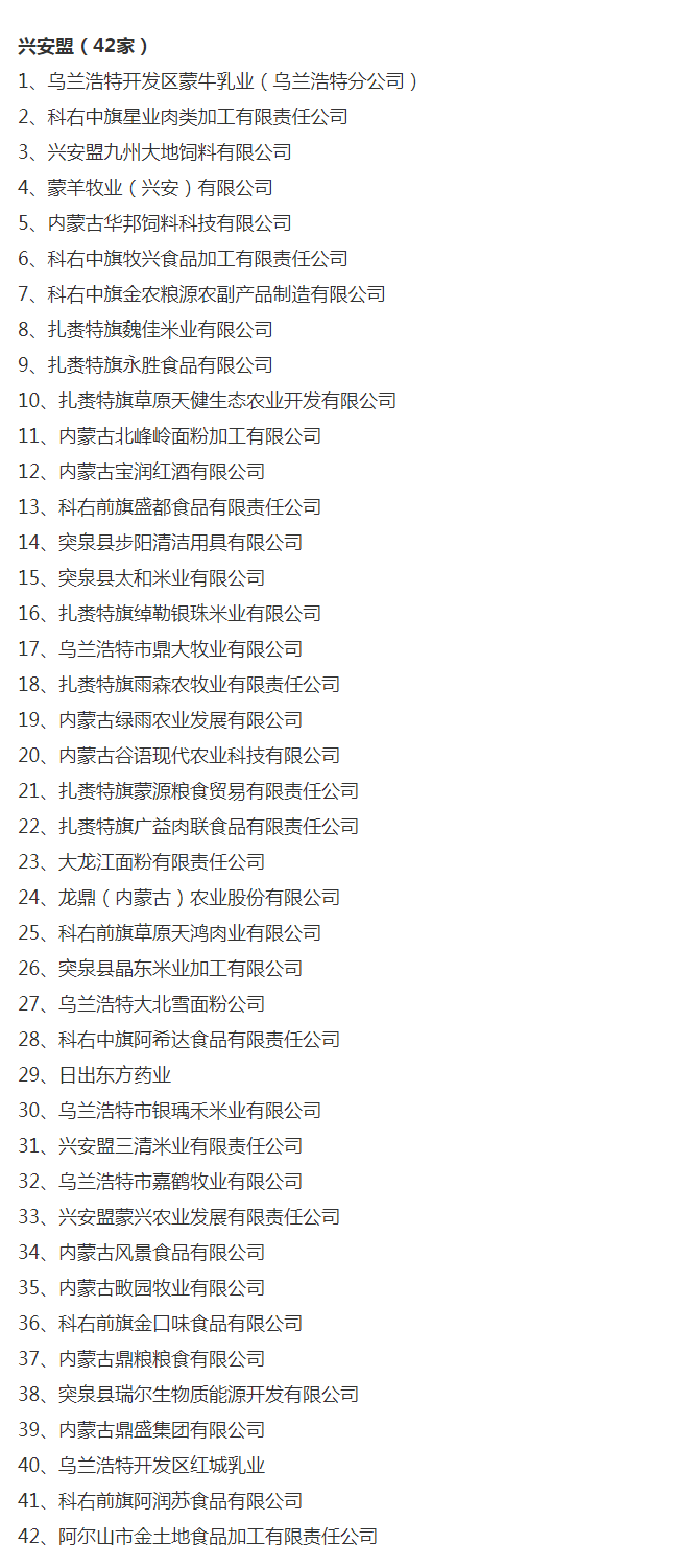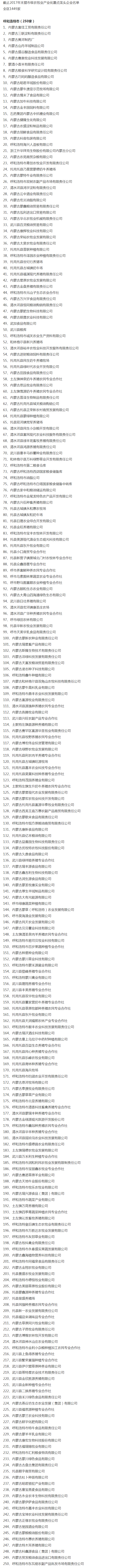企業(yè)名稱:截止2017年末盟市級農(nóng)業(yè)產(chǎn)業(yè)化重點龍頭企業(yè)名單